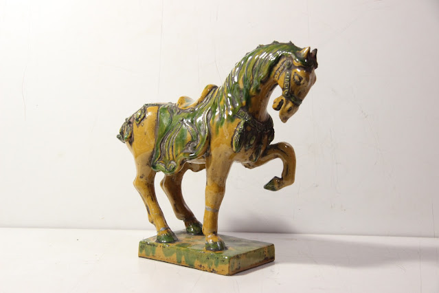 ANTICO XIX secolo CAVALLO TANG CINESE IN TERRACOTTA MISTA DIFETTI Descrizione/Condizioni: La galleria fotografica è parte integrante della descrizione e condizioni. Come si può notare, presenta diverse rotture tra le zampe, una alla base, quindi è stato incollato in più punti. Lo vendo per visto e piaciuto. Di due colori: il giallo pare molto tenace, così come le macchie del verde. In diversi punti si scorge la terracotta, e in altri la pasta bianca. Proveniente da eredità. Ho indicato XIX secolo; a mio avviso la data può anche non corrispondere. Periodo: XIX secolo Misure: Altezza cm.27 larghezza cm.30 profondità cm.9,5 Le misure sono indicative, possono variare di poco.
